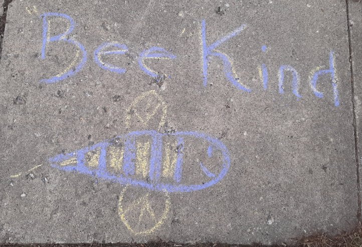 We don’t have kids at home anymore but some adorable elves stopped by today & chalked our walk. Thank-you C & A