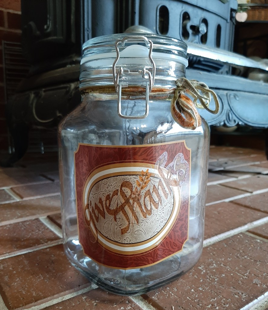 Great idea! Your husband gave you a big jar. It will hold a year’s worth of gratitude. 😀