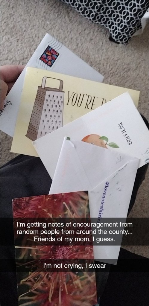 “My mom nominated me to receive notes from your community. At first, I only got one, and I thought “well, that’s nice”. But then the letters started pouring in, and I was completely overwhelmed and flabbergasted.