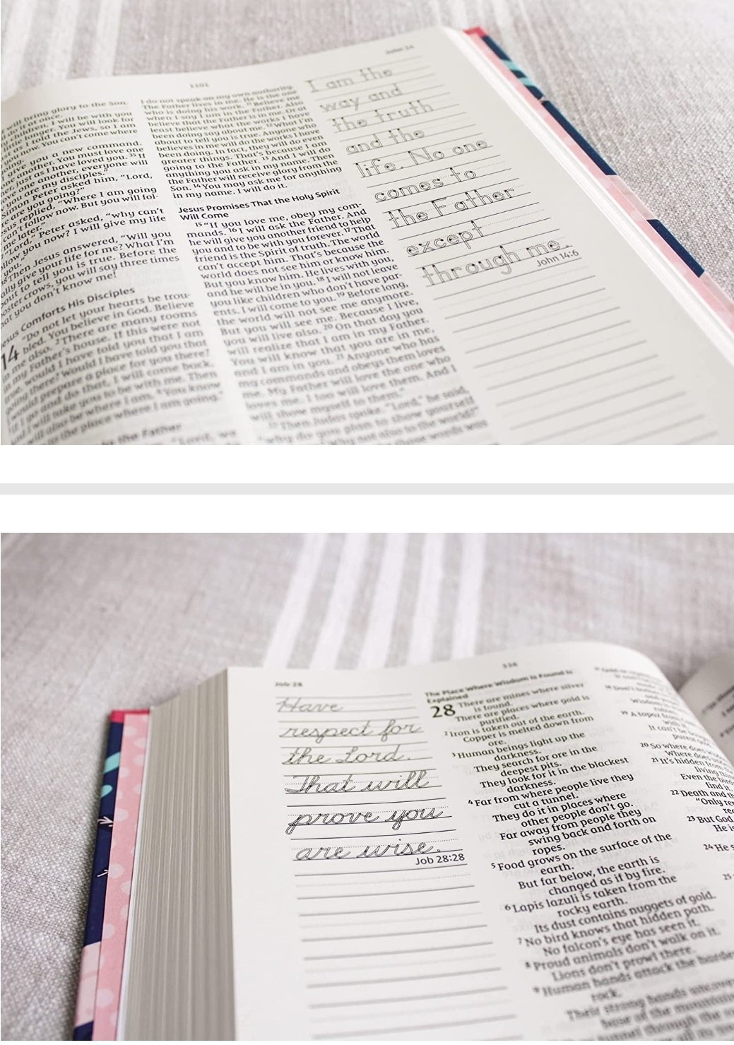 I know there have been times when I have run out of room when taking notes on a particularly thorny passage or fiery sermon. This Bible would be a wonderful gift for any lady in your life (young or old) enjoys doodling and making notes in the margins like me.